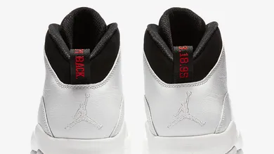 The brand new Air Jordan 10 colorway features a predominately white leather upper, accompanied by hits of black on the tongue, laces and ankle collar. Additionally, the heel tab of the shoes feature "I'm Back" and "3.18.95," which is the date he declared he was coming out of retirement. Tying into the theme, the kicks will officially release on Sunday, March 18th. Retail price $190.