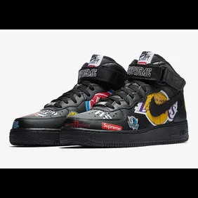 The Supreme x NBA x Nike Air Force 1 Mid will reportedly release in two separate colorways, white and black, both of which feature several NBA logos on the upper, similar to those unforgettable baggy denim jeans and jackets.