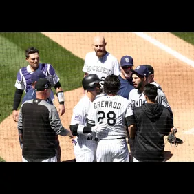 Both benches cleared as Arenado swung wildly at Perdomo but it's tough to tell if he was able to connect during the melee.