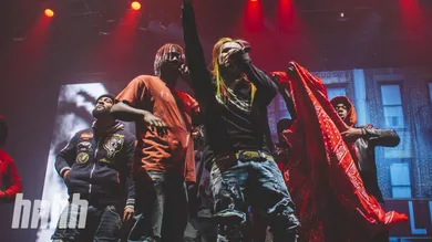 The promo clip begins with a voluptuous women carefully walking over cobblestone, as a series of similarly-clad women bathe in the background. The video then cuts to Tekashi standing tall under a photorealistic rendering of a rainbow, signifying his presence in the tropics. "GOTTI" then takes a turn for the strange as the video cuts to a female body with Tekashi's mug super-imposed in lieu of the original face. It's a sight to behold, really.