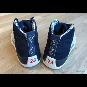 The special edition 12s feature a navy suede upper, complete with a debossed, traditional Japanese floral print and a scaly white mudguard. Additionally, the Japanese inspiration can be found on the heel tab as well as the inner lining.