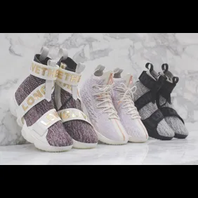 The Performance LeBron XV features a luxury approach to the on-court sneaker, including a rose gold zipper that runs along the center of the upper from the toe to the ankle collar. This zipper conceals a leather panel that displays asymmetric branding, with "Long Live the King" on the right shoe and "Kith x Nike LeBron XV" on the left. The zipper’s execution features openings on the sides which allows a myriad of lacing options, as the laces can be woven over, underneath, and to the sides, depending on the wearer’s preference. The Kith x Nike LeBron Performance XV “Rose Gold” will retail for $200.