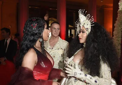 Hours after the big album reveal was announced, another big moment for hip-hop went down, and that was Nicki and Cardi B meeting while at the Met Gala & taking a picture together. The two were spotted talking with one another thanks to fashion designer Jeremy Scott, but who knows what about. However, it appeared to be good energy and the two were caught smiling and Cardi looked to have her hand on her chest in a gesture of gratitude, as if Nicki was complimenting her maybe?