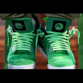 Last week, Wahlberg flexed some of his newest rare Airs with a special pair of Air Jordan 4s in celebration of the brand new Wahlburgers location at the Mall of America in Minnesota. Inspired by his family's burger chain, the kicks are doused in green accompanied by translucent wings and outsoles with removable Wahlburgers logo tongue patches.