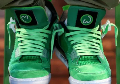 This "Wahlburgers" Air Jordan 4 is similar to the custom black colorway that sneaker customizer Mache designed for Wahlberg last year, but it's rumored that this green rendition is an official Jordan Brand collab.