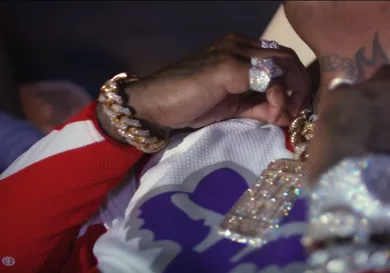 The rapper doesn't shy away from help of the divine kind. There are religious symbols flashed throughout the video. The rapper doesn't explicitly say that he needs Jesus, but the sacred figure appears numerous times as a statuette with bloodied knees.
