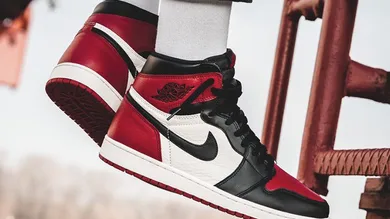 The newly unveiled "Bred Toe" Air Jordan 1s are essentially a combination of the iconic "Black Toe" and "Bred" Air Jordan 1s, featuring a combination of red and black, as well as “Sail” white colored panelling, reminiscent of the "Shattered Backboard" version that dropped last year.
