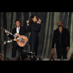 Mr. West, RiRi, and Paul McCartney combined their star power to perform “FourFiveSeconds” at the 2015 Grammys. The performance marked the first time the trio would perform the single live.