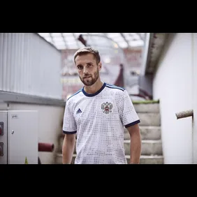Russia: A celebration of the country’s street soccer scene and is a combination of two key elements. The white jersey features a unique grey graphic depicting an abstract vision of Russian architecture and pays homage to the architectural landmarks and industrial cities of the country.