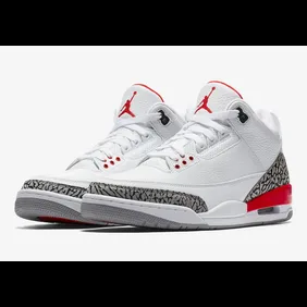 These special edition 3s feature a similar look as the beloved "White Cement" 3s with the addition of red on the mudguard instead of black. The upper is comprised of a crisp, white tumbled leather and the heel tab sports the familiar Jumpman logo in black. The shoes were originally introduced through charity auctions as a means to raise money for Hurricane Katrina victims in 2006.