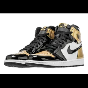 Similar to the "Gold Top-3" Air Jordan 1, this upcoming "Gold Toe" colorway utilizes a combination of black and gold patent leather, although both the left and right sneaker are styled the same as opposed to the mismatched "Top-3" version.