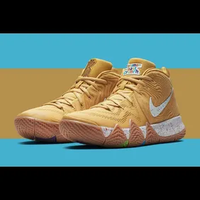 Each of the Kyrie 4s features the cereal logo on the left tongue, as well as some other cereal-specific accents. For instance, the "Cinnamon Toast Crunch" Kyrie 4 includes some cinnamon-swirl detailing while the Lucky Charms rendition has all of the Leprechaun's favorite marshmallows debossed onto the upper.