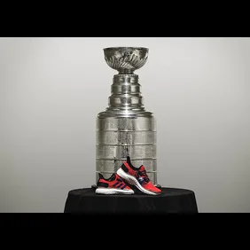 In celebration of Alex Ovechkin, T.J. Oshie and the rest of the Stanley Cup-winning Caps, Adidas launched a special edition sneaker featuring the team's red, white & blue color scheme. The Adidas AM4NHL features the Washington Capitals' logo on the medial side, as well as smaller team logos and NHL logos on the heel patch.