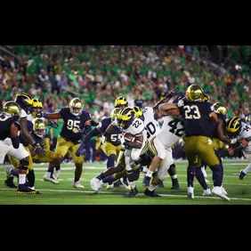 By the end of the first half, Notre Dame scored 21 points and clocked 233 yards of offense, but by the second half, the team was bogged down only putting up 3 more points and 69 yards. As for Michigan, a slow start of 10 points and 90 yards of offense was met with 217 yards in the second half. Despite the lack of congruency on both sides, it still wasn't enough for Michigan to prevail victorious.