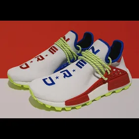According to sneaker source @TheYeezyMafia, the Pharrell x Adidas NMD Hu "N.E.R.D" will release on Saturday, June 16, exclusively at the Z104 Shaggfest festival at Veterans United Home Loans Ampitheater in Pharrell's hometown of Virginia Beach. N.E.R.D will be performing at the festival, as will Rae Sremmurd, French Montana & others.