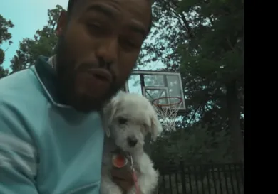 East tosses racks from a balcony, smokes on some gas, and dances around a driveway while holding a puppy in the video. Dressed in a baby blue outfit while grasping a bottle of Luc Belaire Gold, East continues his lyrical assault while keeping one hand occupied with the cute pup.