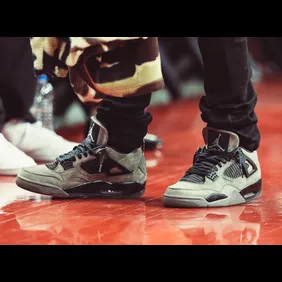 Travis Scott was court side at the Toyota Center in Houston last night for Game 1 of the Western Conference Finals, but he wasn't wearing his Houston Oilers-inspired "Cactus Jack" Air Jordan 4 collab. Instead, he opted for another one of his unreleased Air Jordan 4 collabs.