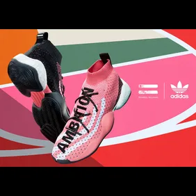 This time around, the Pharrell x Adidas Crazy BYW LVL comes in a predominately pink colorway, in addition to a black rendition that includes hits of pink throughout. Both of the special edition kicks feature "Ambition" text that runs from the toebox to the ankle collar, in addition to the beloved Boost cushioning that sits beneath the knit upper.