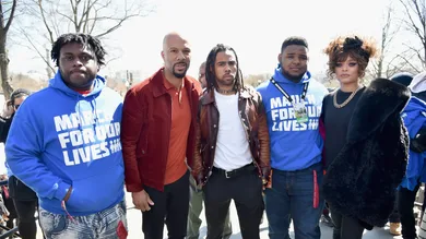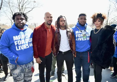 Common and Vic Mensa were part of a Chicago contingent that showed up for the Washington, DC MarchForOurLives rally, central to the movement. They set off on foot with Kanye, Kim and even 4 year old North West, blending in with the crowd of hundreds of thousands.