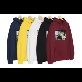 The three photographs used as part of the upcoming Supreme x Nan Goldin collection are called: Misty and Jimmy Paulette in a taxi, NYC 1991; Kim in Rhinestones, Paris 1991; Nan as a dominatrix, Cambridge MA 1978. The collection consists of a coaches jacket, hooded sweatshirts, three different short-sleeved t-shirts and three skateboard decks.