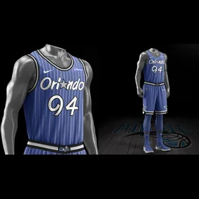 The classic, blue pinstriped uniforms serve as a nod to the road jerseys worn by the likes of Shaquille O'Neal, Penny Hardaway, Nick Anderson, Dennis Scott and Horace Grant from 1994 until 1998. With the exception of the Nike and Disney logos on the jersey, the 2018 rendition looks very much like the beloved retro, including the star logo in place of the "A" in "Orlando" across the chest. According to the Orlando Sentinel, the team has not yet revealed how often they'll wear these throwback uniforms.