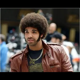 Details are sparse as to what role 'Ye or Drizzy will play, but judging from the Kanye pics they could be part of a rival news team and take place in an epic "news team battle." In the pic, Drake is rocking a large afro with the matching serious sideburns and a leather jacket.