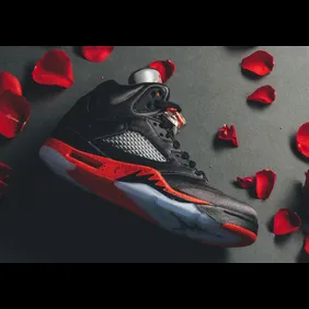 Now, Jordan Brand is bringing the satin design to the Air Jordan 5 with an all-new "Bred" colorway. The kicks, available in sizes for the whole fam, feature a predominately black satin build accompanied by a red speckled midsole and an icy blue translucent outsole. Additional details include a reflective 3M tongue with a red jumpman, while a black jumpman sits on the heel, blending with the black satin upper.
