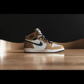 The Air Jordan 1 High "Rookie of the Year" comes in a "golden harvest" and black colorway which pays homage to MJ’s historical rookie season and takes design cues from the outfit he wore the day he accepted the ROY award in 1985. Highlights include detached collar flaps that display his rookie season statistics and a quote from his acceptance speech.