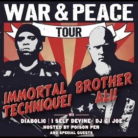 Brother Ali and Immortal Technique have announced that they will head out on a 26-date "War & Peace Tour." The tour opens September 5 at the Mateel Community Center at Redway, California and closes out October 5 in New York.