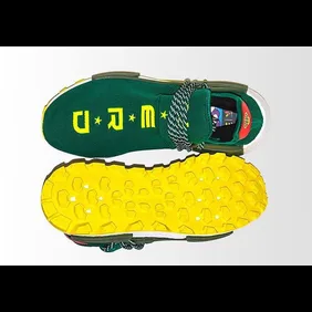 This time around, the Pharrell x Adidas NMD HU "N.E.R.D" is built on a green flyknit upper accompanied by yellow N.E.R.D text and a red heel tab. Billionaire Boys Club has announced that the exclusive sneakers will be available via the Frenzy app at 12 pm starting today, September 11.