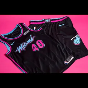 The Miami Heat are sticking with the popular "Miami Vice" theme for their City Edition Nike uniforms this season, but this time around the unis come in black. The Heat today introduced the new jerseys, which serve as a follow up to the white rendition that was the best-selling third jersey in NBA history, according to ESPN's Darren Rovell.