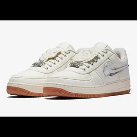 Travis Scott's Nike Air Force 1 Low collab will reportedly release again next month in a "Sail" colorway, following up the white canvas rendition that dropped last December. The kicks feature the same design as the first, including the removable chrome Nike swooshes, lace dubraes, upside down Nike Air branding on the heel, and Velcro patches.