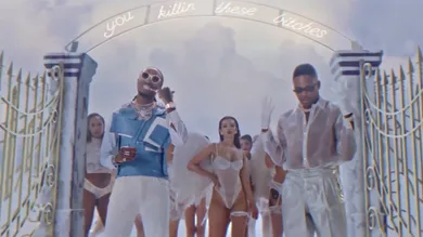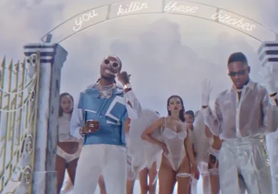 The latest song off YG's Stay Dangerous to receive a video disclaimer is "Slay" with Offset. As you can see, the music video's theme is centered around the confines of heaven, where each and every woman subject to the original decree becomes an archangel. The "Slay" is essentially a gender/role reversal on the old Philadelphia cream cheese commercials where the recurring "host" teases "a little taste of heaven" while male servants tend to her needs.