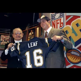 Leaf went second to the San Diego Chargers and it was all down hill from there. Leaf's rookie season was marred by poor play, bad behavior and clashes with the media. He only spent two seasons with the Chargers, throwing 33 interceptions to just 13 touchdowns during that time.