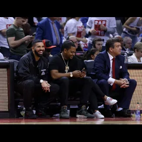 After Stranger Things’ actress Millie Bobbie Brown was spotted rocking the jacket last week, former Oklahoma guard & future NBA star Trae Young was wearing the coat today along with DJ Khaled as well. Drizzy shared all the photos on his own IG account Monday afternoon, captioning Khaled’s pic with “another one.” He also posted a pic of his Scorpion family rockin’ the jacket court side at the Cavaliers game Monday night as well.