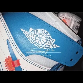 The "Dark Power Blue" aka "UNC" Off-White x Air Jordan 1 features the same color blocking as the "Chicago" colorway that dropped in 2017. The UNC inspired kicks include all the familiar attributes of a Virgil Abloh AJ1, most notably the "AIR" text on the midsole and orange stitching.