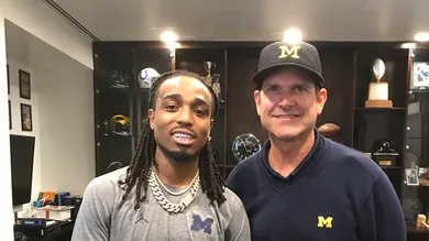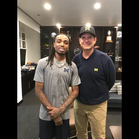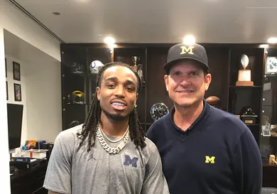 Harbaugh, who is still searching for his starting quarterback, took some time out of his busy schedule today to pose for a photo with another former QB, Quavo, ahead of the Drake & Migos show at Little Caesars Arena in Midtown Detroit. He also provided the perfect caption for anyone on the fence about attending tonight's performance, "No doubt Migos & Drake will knock everyone's socks off."
