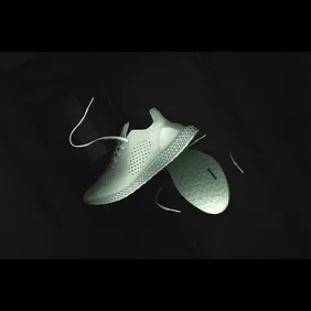 Per Adidas: "Informed by Daniel's exploration of the concept of art and chaos, "future" features a cutting-edge silhouette. It celebrates the relentless commitment to innovation and creativity of adidas and Daniel Arsham with revolutionary carbon 4D printed tooling and a fully Primeknit upper that reveals the word "FUTURE" when exposed to UV light."