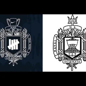 The original Nike x Undefeated logo featured banners that include phrases such as “Respect All” and “Fear None” with a Nike-branded cup at the top of the crest. "The Fives" logo caught the attention of the Naval Academy, who advised The Swoosh to cease and desist their use of the image.