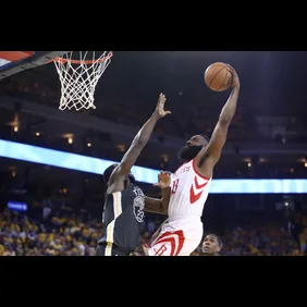 Houston's star-studded back court of Chris Paul and James Harden combined for 57 points on the night, which included Harden's emphatic stuff on Draymond Green midway through the second quarter.