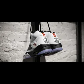 Additionally, Jordan Brand has unveiled an exclusive "Friends & Family" colorway of the Air Jordan 5 PSG. Like the black Air Jordan 5 PSG that is releasing tomorrow, the white rendition features "75" branding in place of the "23," PSG's logo on the heel, and "PARIS" text on the mesh with a Jumpman logo in place of the "A."