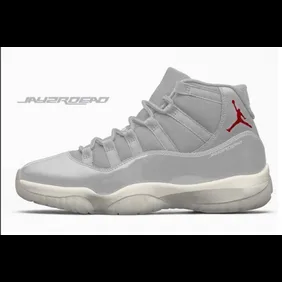 The "Platinum Tint" rendition is rumored to drop in October, while the women's exclusive is tentatively scheduled for November. Early images of the upcoming "Platinum Tint" Air Jordan 11s surfaced today, showcasing a light grey "platinum" upper accompanied by a sail colored mesh and tongue with red, black and white accents throughout.
