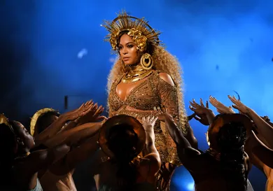 Standing under “The Winged Victory of Samothrace" that is a sculpture of Nike, the Greek goddess of victory (dating back to second century B.C.) Beyonce is dressed in a wedding dress by Stephane Rolland that is worth the crazy amount of dollars. Check it out below.