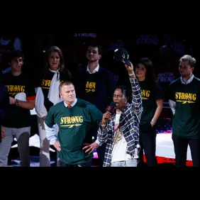 Joining Tilman Fertitta was non-other than Rockets’ superfine Travis Scott, who also said some kinds words to the students. La Flame said to the roaring crowd before tip: