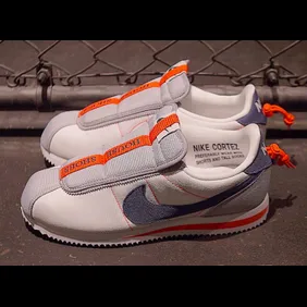 The kicks first surfaced today in a white, wolf grey, turf orange and thunder blue colorway. Additional details include "House Shoes" text written down the strap of the tongue, and an adjustable lace toggle on the heel. Nike has not yet revealed any official images or release details but it is believed the slip-on Cortez will launch at select Nike retailers on September 22 for the retail price of $100.