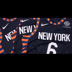 The New York Knicks are turning the clocks back to the 1950s with their new Nike "City Edition" uniforms, featuring an alternating blue and orange trim as a nod to the 1952-61 Knicks uniform.