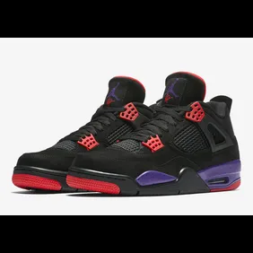 Next up is the Toronto Raptors inspired Air Jordan 4 that is now rumored to hit retailers on May 4th. Just like the "Raptors" Air Jordan 7 that released in 2012, this upcoming sneaker features a black nubuck upper accompanied by hits of red and purple which is more in tune with their classic dribbling dino logo.
