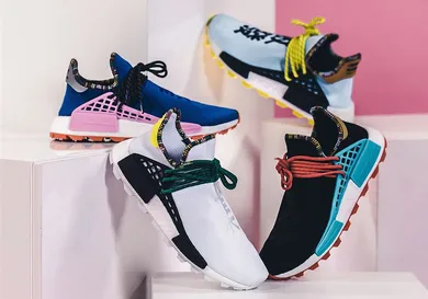 The kicks will be available at select Adidas retailers in the Unites States on Saturday, November 10, but overseas spots like END., SneakersnStuff, and Afew will be dropping the Pharrell x Adidas NMD Hu "Inspiration Pack" starting at 6pm ET. Each pair will retail for $250.