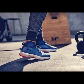 The kicks, weighing in 12.24 oz, come in a patriotic colorway sporting a navy blue, knit upper accompanied by Under Armour's white "Micro G" midsole, red accents and The Rock's iconic Brahma Bull logo on the heel. Of course, the shoes are designed for training and weight-lifting so all of the design elements are conducive to a bigger, stronger and faster version of yourself.