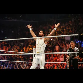 The payoff came nearly five months later in the main event of the 2014 HIAC PPV, where the two bitter rivals kicked things off on top of the cage. Technically, Rollins sic'd his two sidekick jabronis up to get Ambrose but when they failed he had no choice but to scale the cell himself.